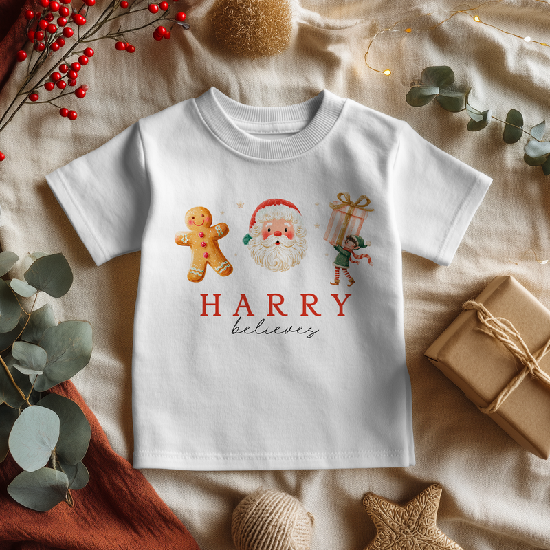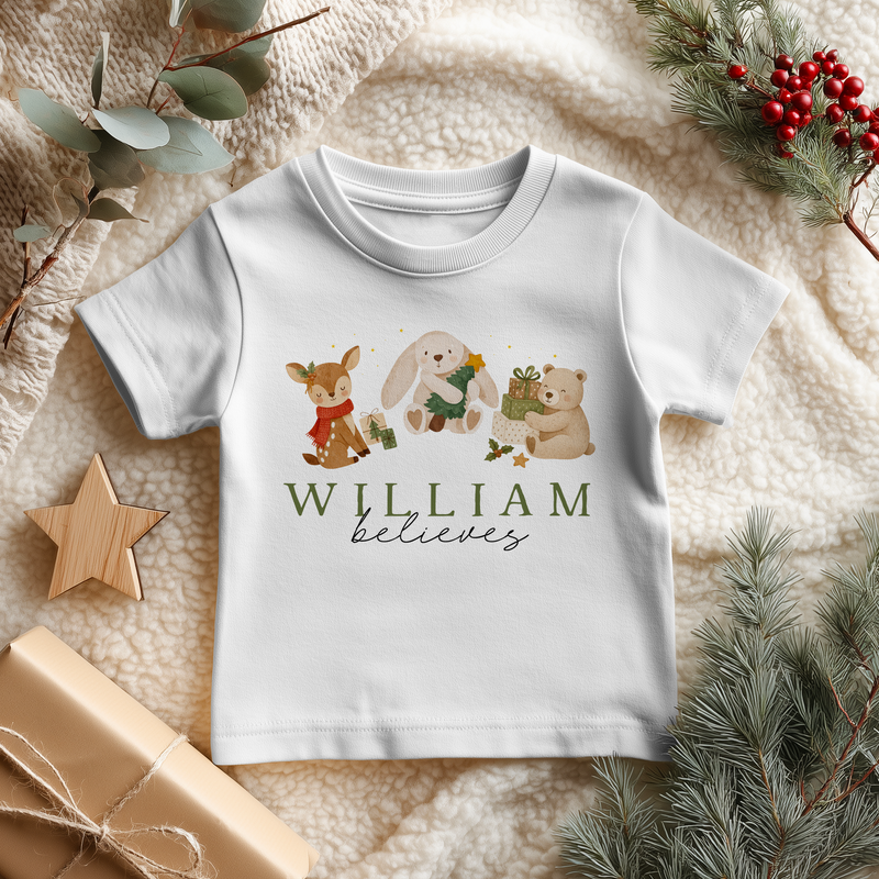 Believe Christmas Animals Personalised Toddler & Kids T Shirt