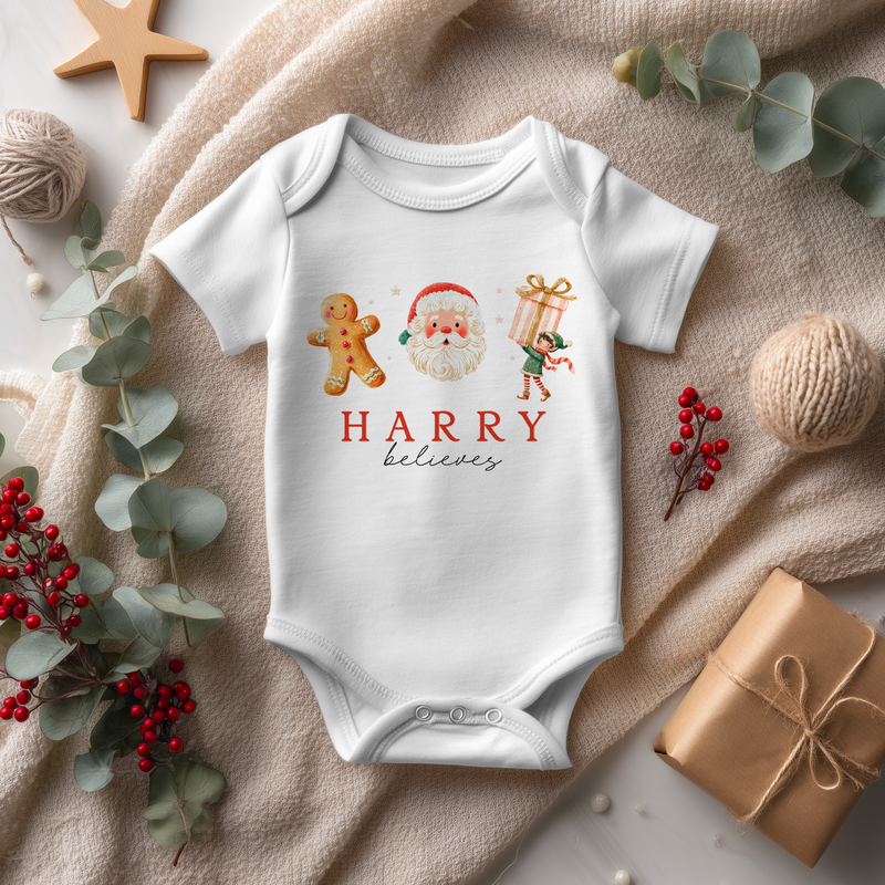 Christmas Santa, Gingerbread & Elf Personalised Baby Bodysuit