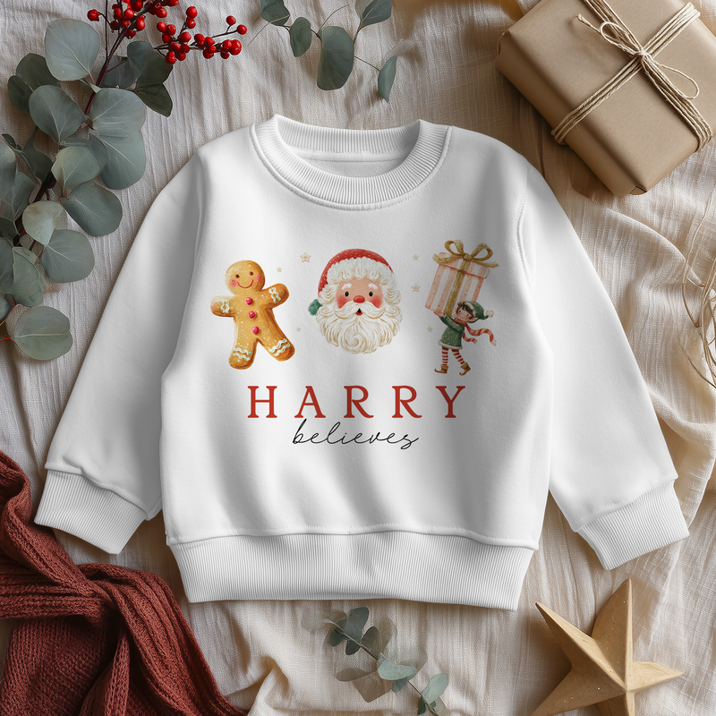 Christmas Santa, Gingerbread & Elf Personalised Toddler & Kids Sweatshirt