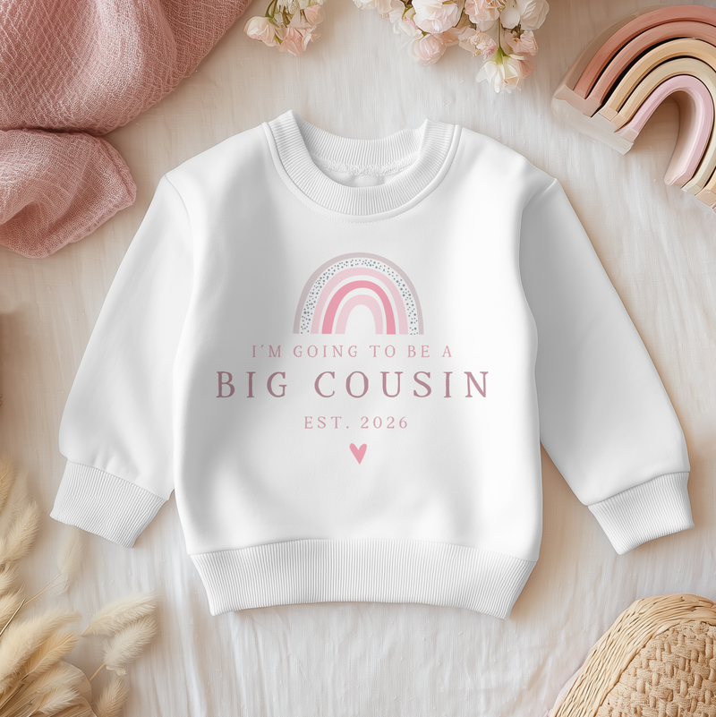 I'm Going To Be A Big Cousin Pink Rainbow Personalised Toddler & Kids Sweatshirt
