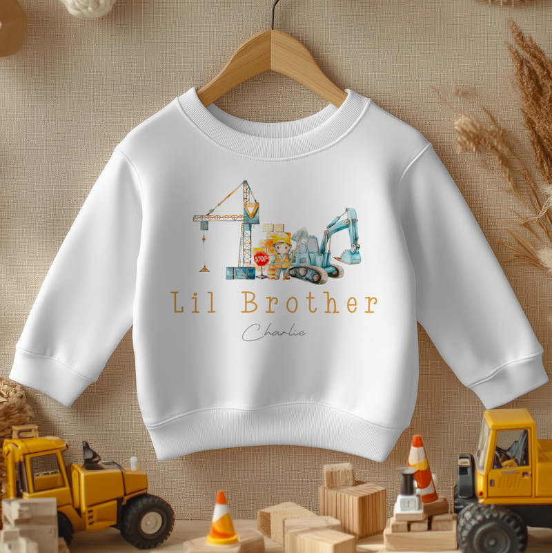 Little/Lil Brother Builder Excavator Theme Personalised Toddler & Kids Sweatshirt