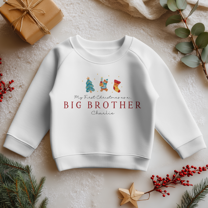 My First Christmas As a Big Brother Personalised Toddler & Kids Sweatshirt