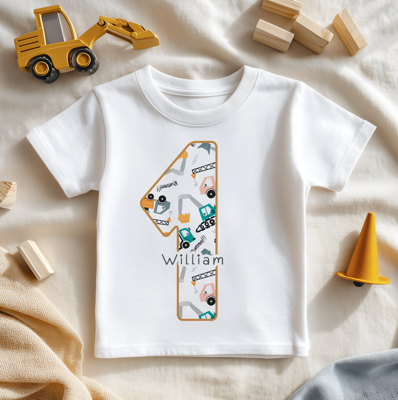 1st Birthday Digger Construction Personalised Toddler & Kids T Shirt