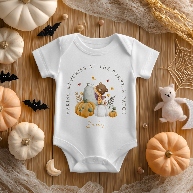 Making Pumpkin Patch Memories Fall Halloween Personalised Baby Bodysuit