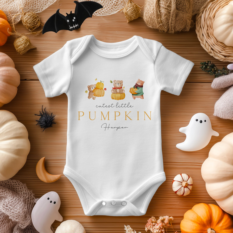Cutest Little Pumpkin Halloween Fall Personalised Baby Bodysuit