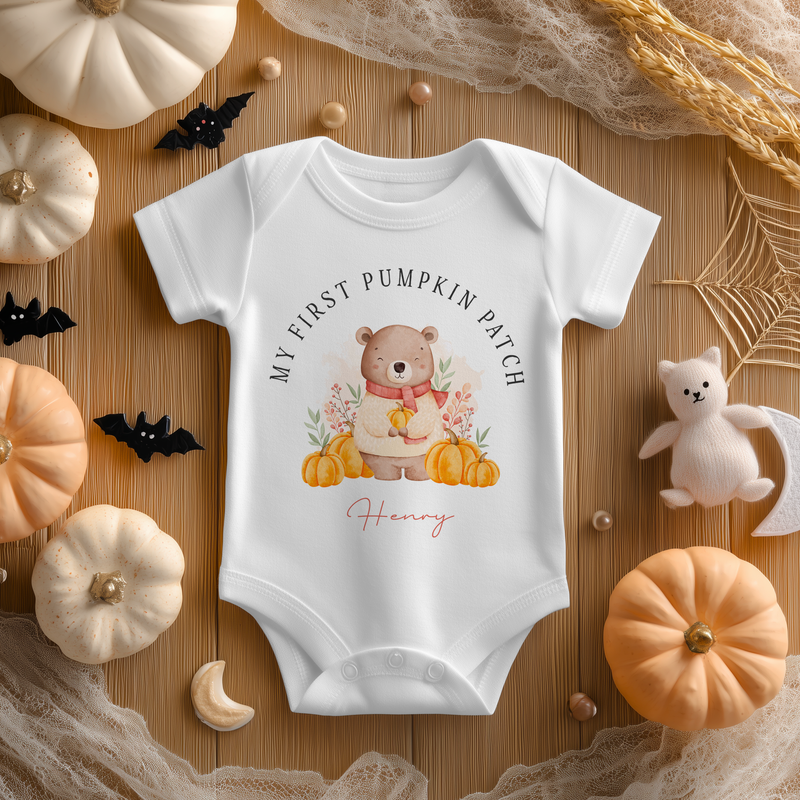 My First Pumpkin Patch Cute Halloween Personalised Baby Bodysuit