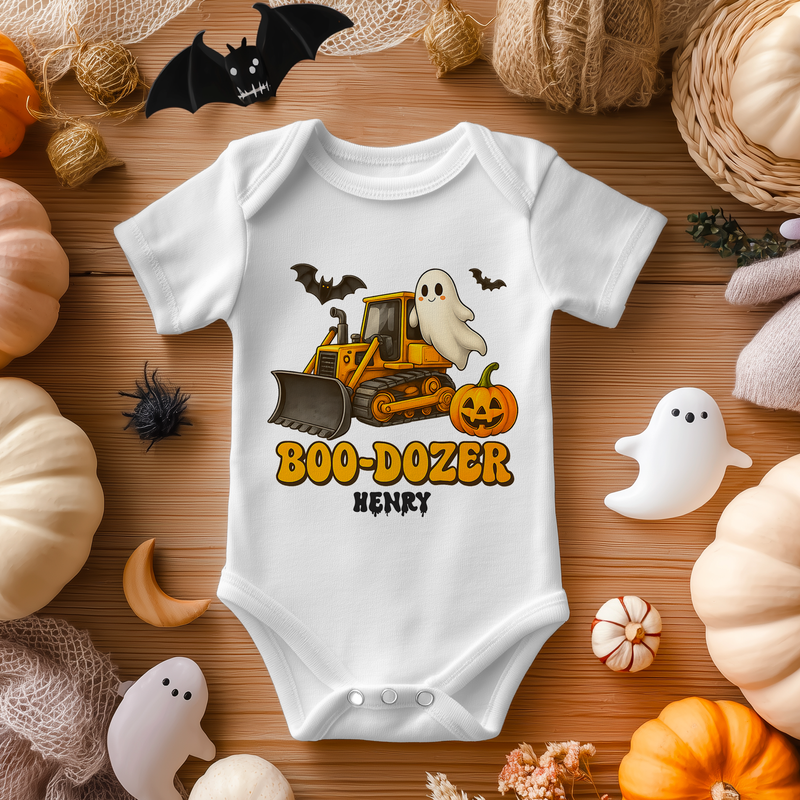 Boo-Dozer Bulldozer Boys Halloween Personalised Baby Bodysuit