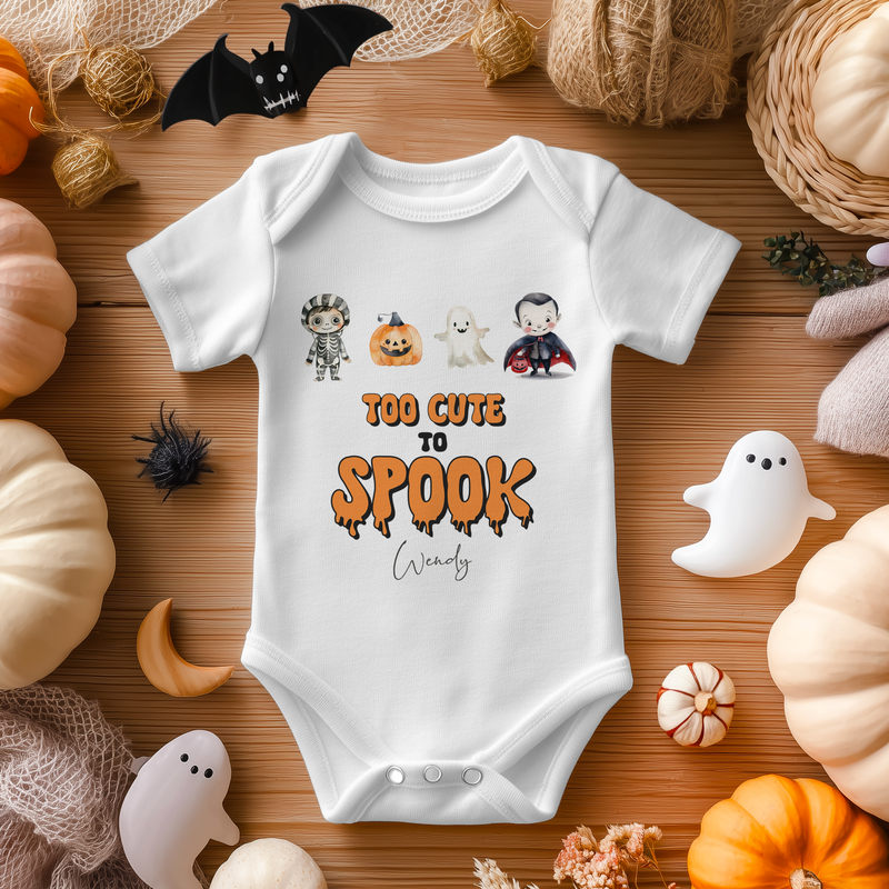 Too Cute To Spook Halloween Personalised Baby Bodysuit