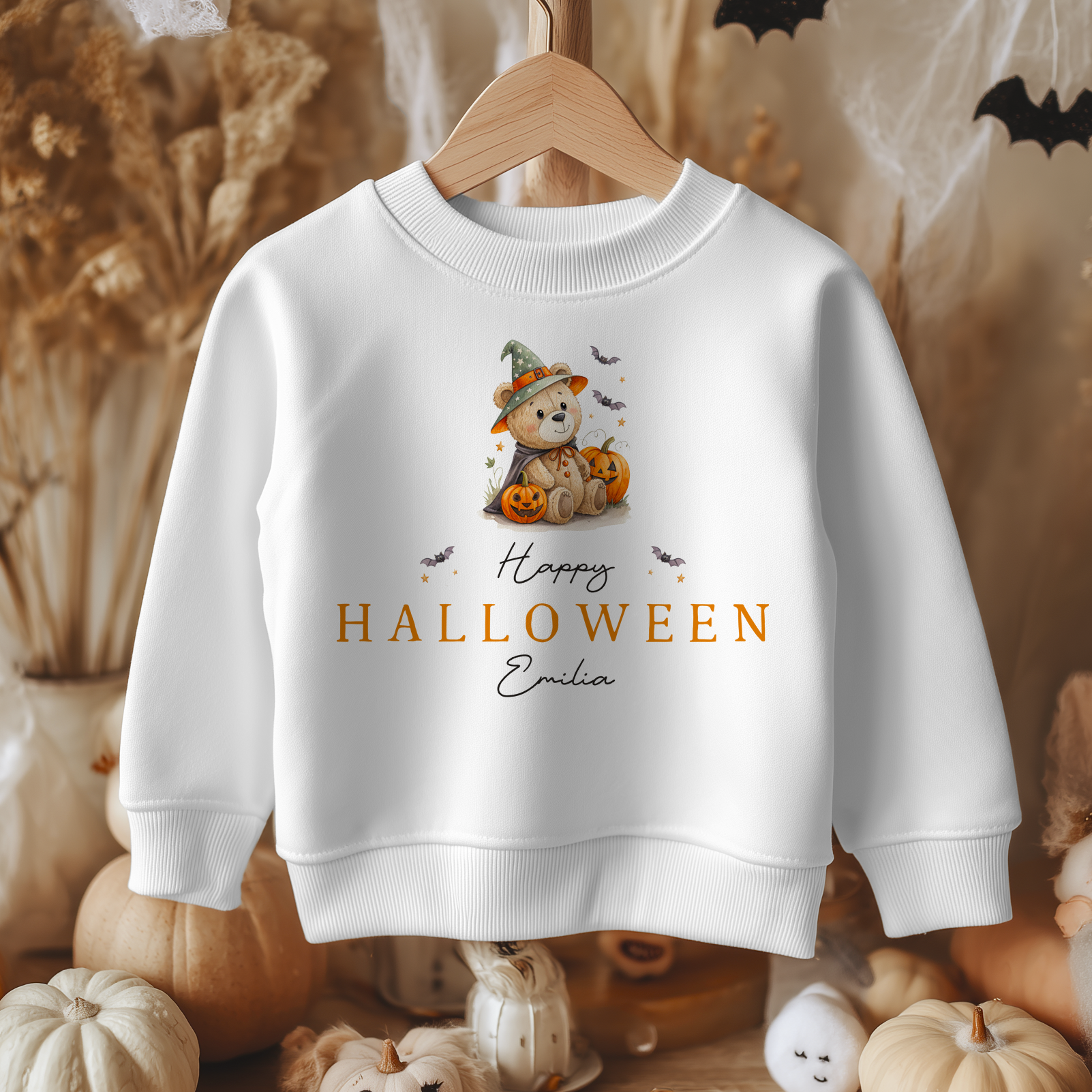Halloween Cute Teddy Bear With Pumpkin Personalised Toddler & Kids Sweatshirt