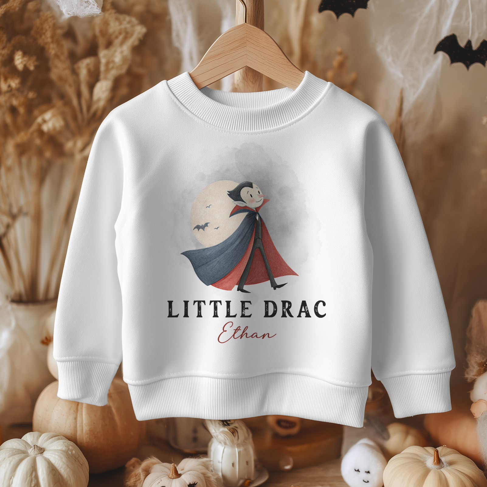 Little Drac Cute Halloween Dracula Personalised Toddler & Kids Sweatshirt