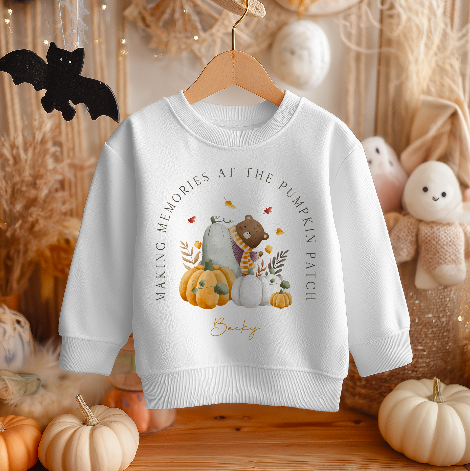 Making Memories At The Pumpkin Patch Cute Halloween Personalised Toddler & Kids Sweatshirt