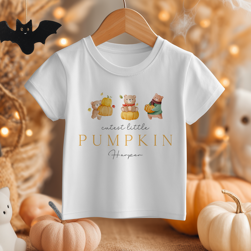 Cutest Little Pumpkin Fall Halloween Personalised Toddler & Kids T Shirt