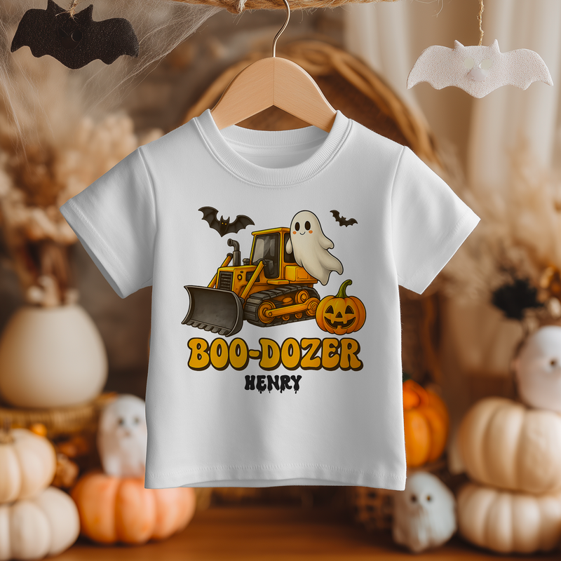 Boo-Dozer Bulldozer Boys Halloween Personalised Toddler & Kids T Shirt