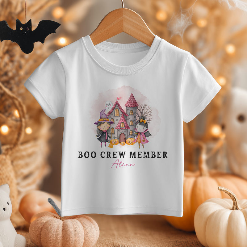 Boo Crew Member Cute Witch Halloween Girl Personalised Toddler & Kids T Shirt