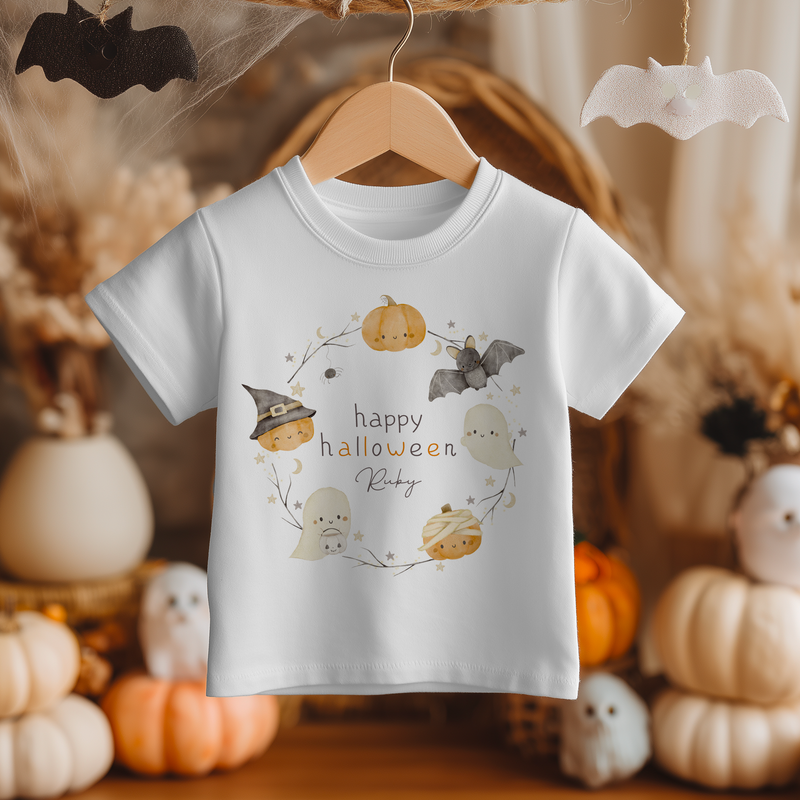 Happy Halloween Cute Ghost Personalised Toddler & Kids T Shirt