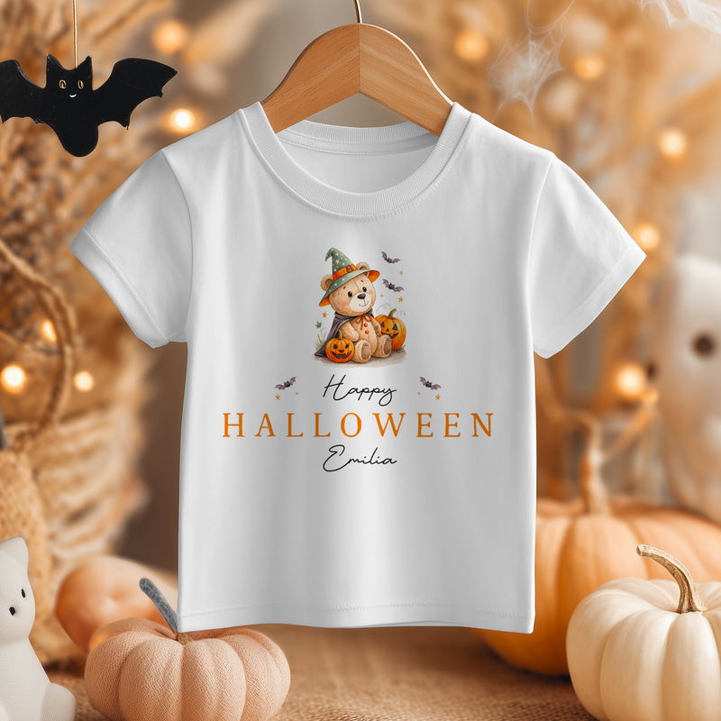 Halloween Cute Teddy Bear With Pumpkin Personalised Toddler & Kids T Shirt
