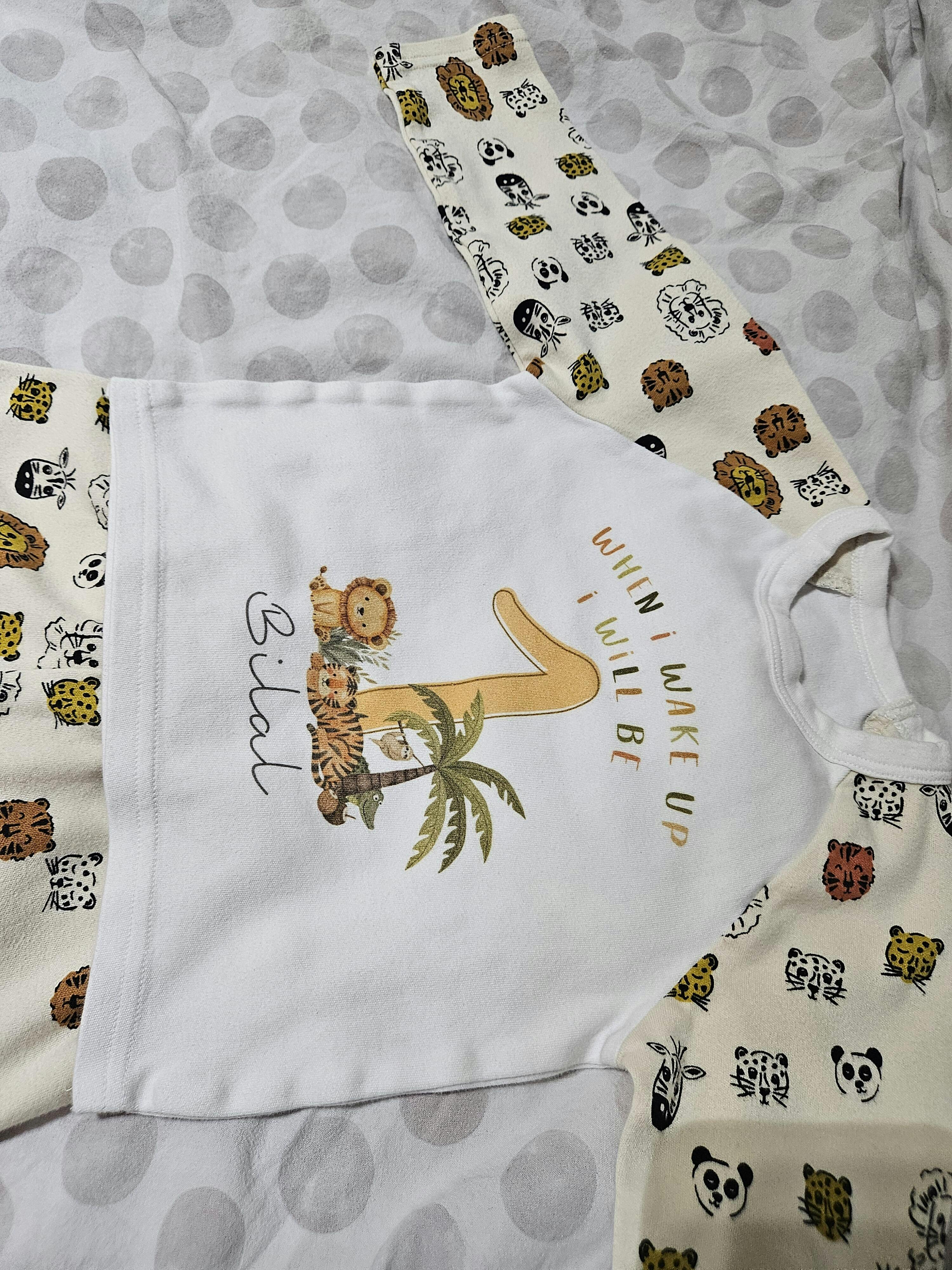 When I Wake Up I Will Be One Birthday Safari Theme Custom Toddler & Kids Pyjamas Set