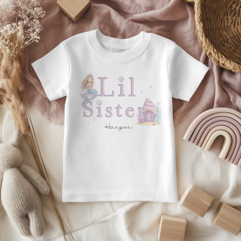 Little/Lil Sister Mermaid Personalised Toddler & Kids T Shirt