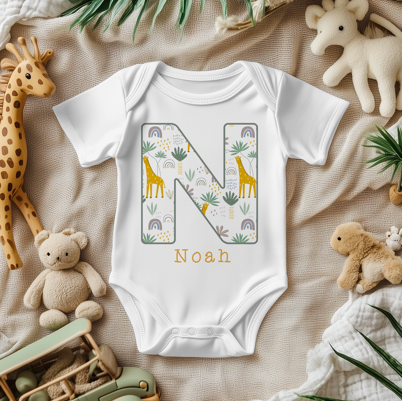Personalised Name With Initial Space & Astronaut Theme Baby Bodysuit