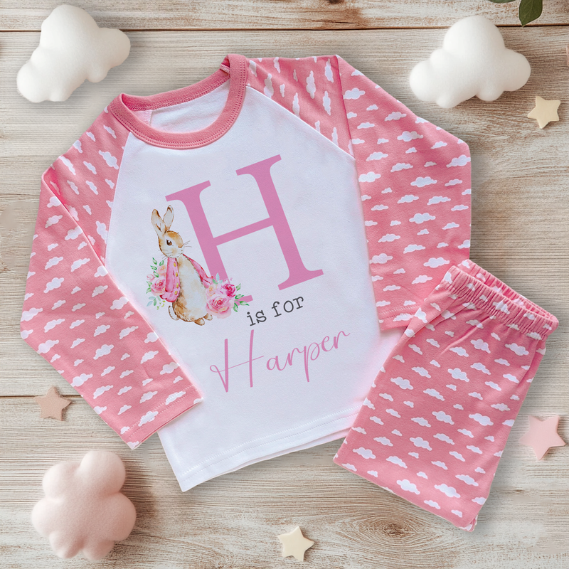 Peter Rabbit Inspired Personalised Name Toddler & Kids Pink Pyjamas Set