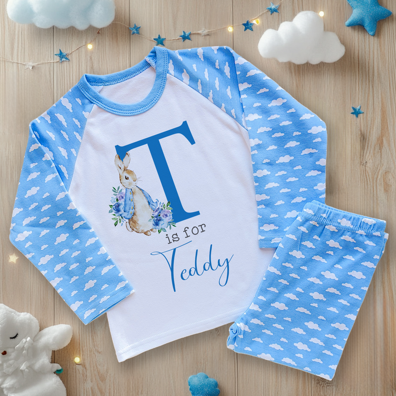 Peter Rabbit Inspired Personalised Name Toddler & Kids Blue Pyjamas Set
