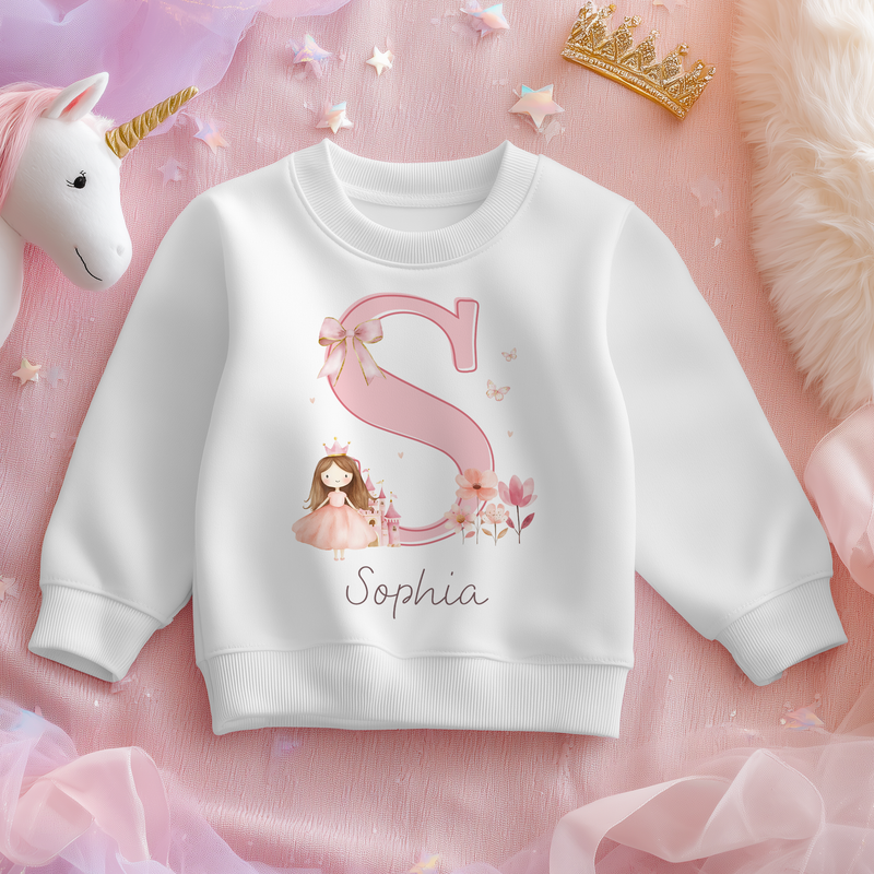 Princess Pink Theme Personalised Name With Initial Toddler & Kids Sweatshirt