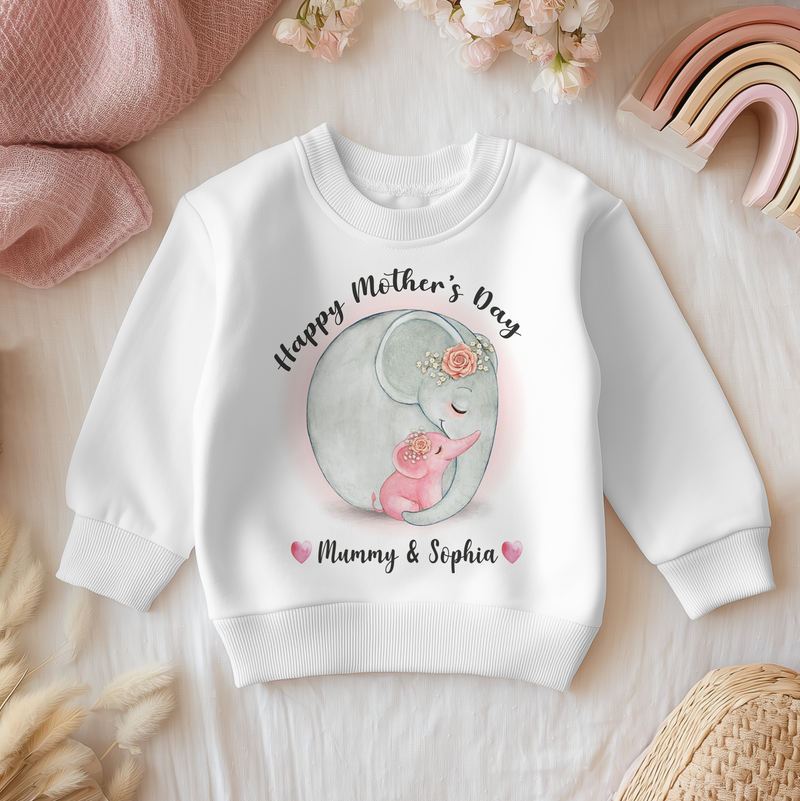 Mother's Day Cute Elephants Girl Personalised Toddler & Kids Sweatshirt