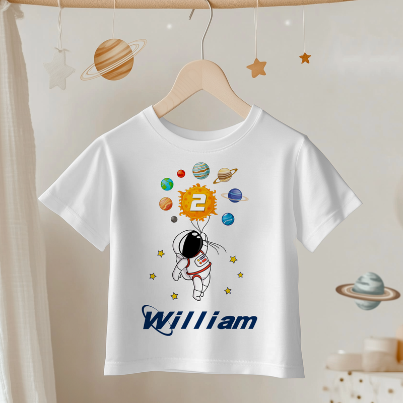 2nd Birthday Astronaut Solar System Personalised Toddler & Kids T Shirt
