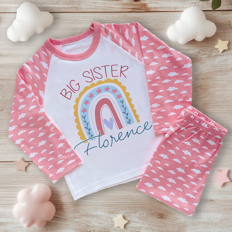 Big Sister Rainbow Personalised Toddler & Kids Pyjamas Set