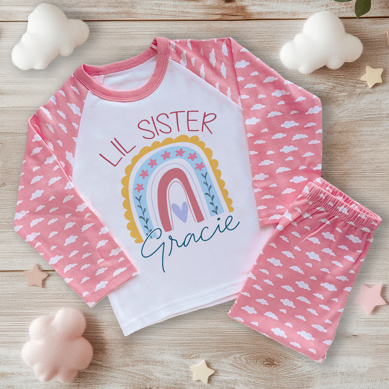 Lil/Little Sister Rainbow Personalised Toddler & Kids Pyjamas Set