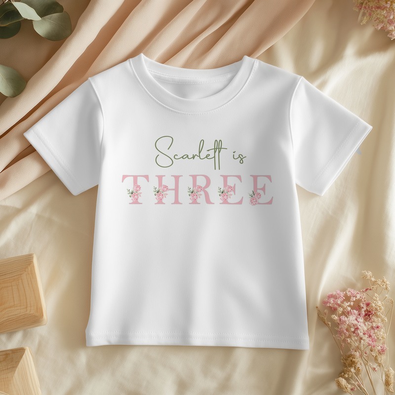 3rd Birthday Pink Floral Theme Personalised Kids T Shirt