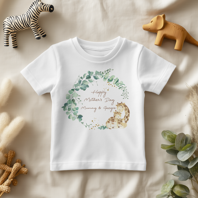 Giraffe Wreath Mother's Day Personalised Toddler & Kids T Shirt