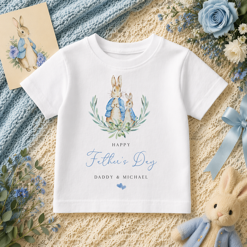 Personalised Father's Day Peter Rabbit & Wreath T-Shirt for Kids