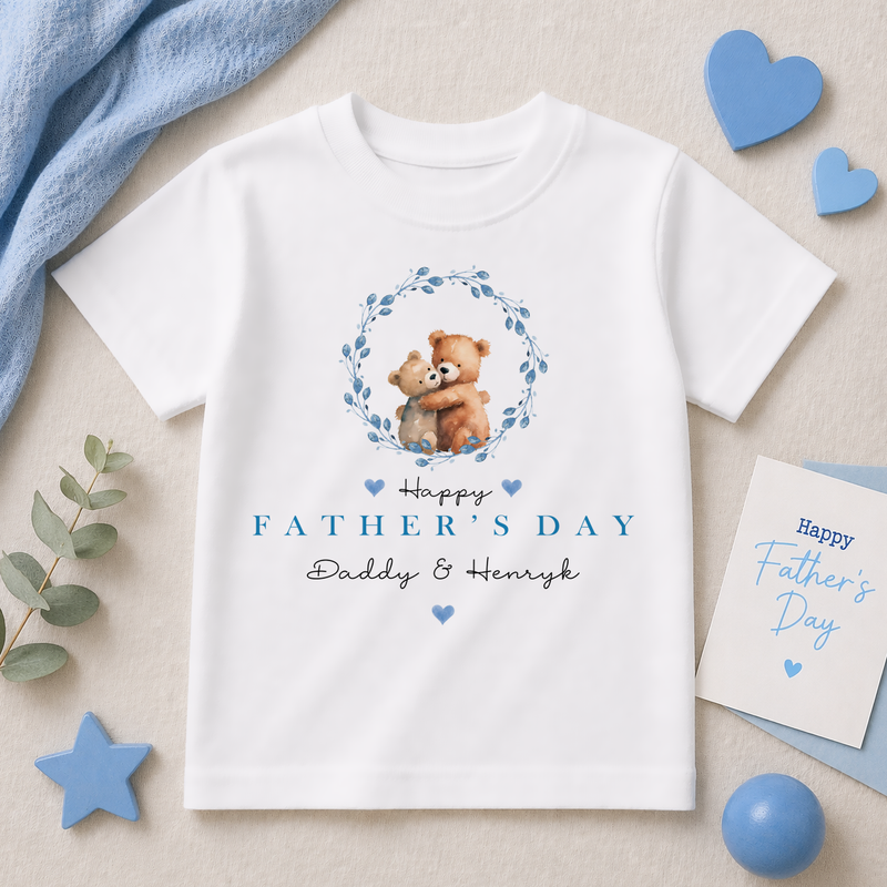 Personalised Father's Day Hugging Bears Blue Wreath T-Shirt for Boys & Kids