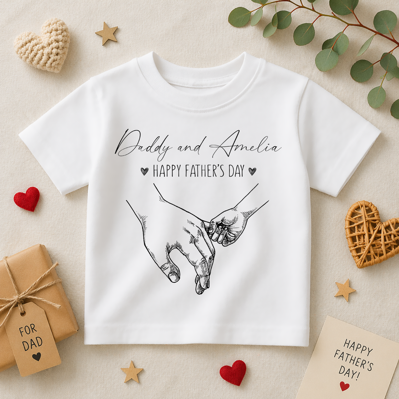 Personalised Father's Day Holding Hands Sketch T-Shirt for Kids