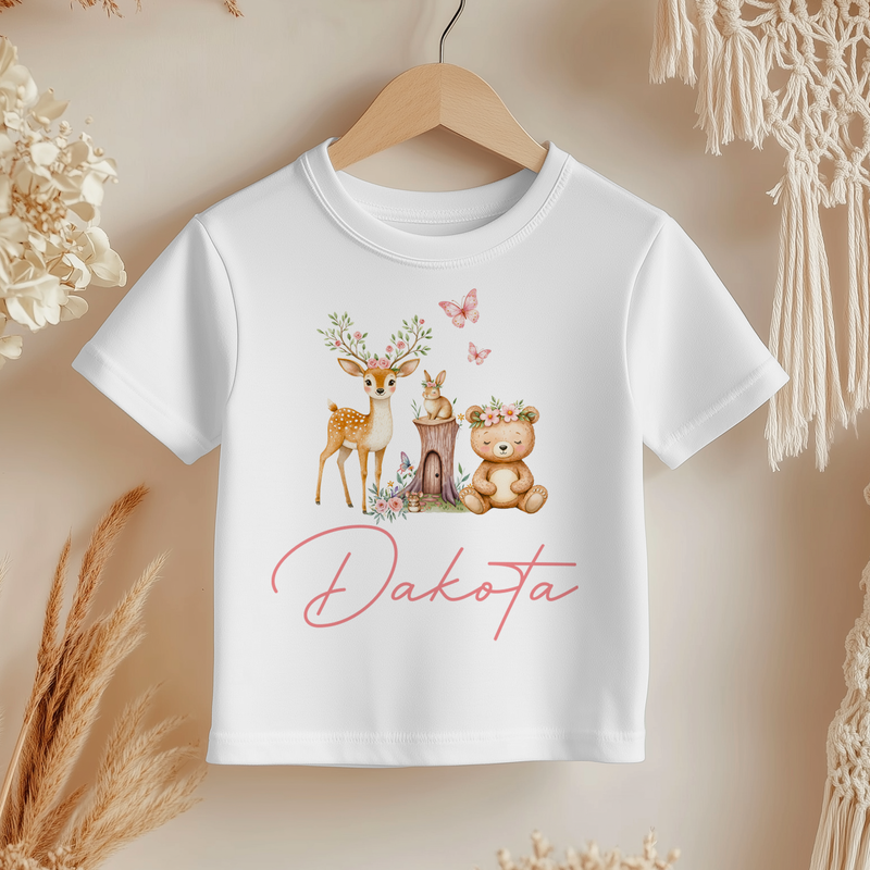 Forest Cute Animals Girl Personalised Toddler & Kids T Shirt