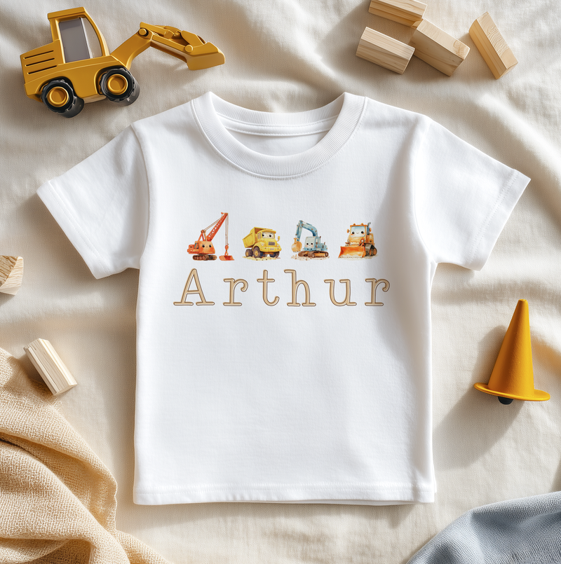 Construction Excavator Digger Theme Personalised Toddler & Kids T Shirt