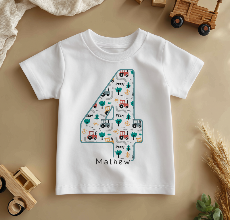 4th Birthday Farm Tractor Personalised Kids T Shirt
