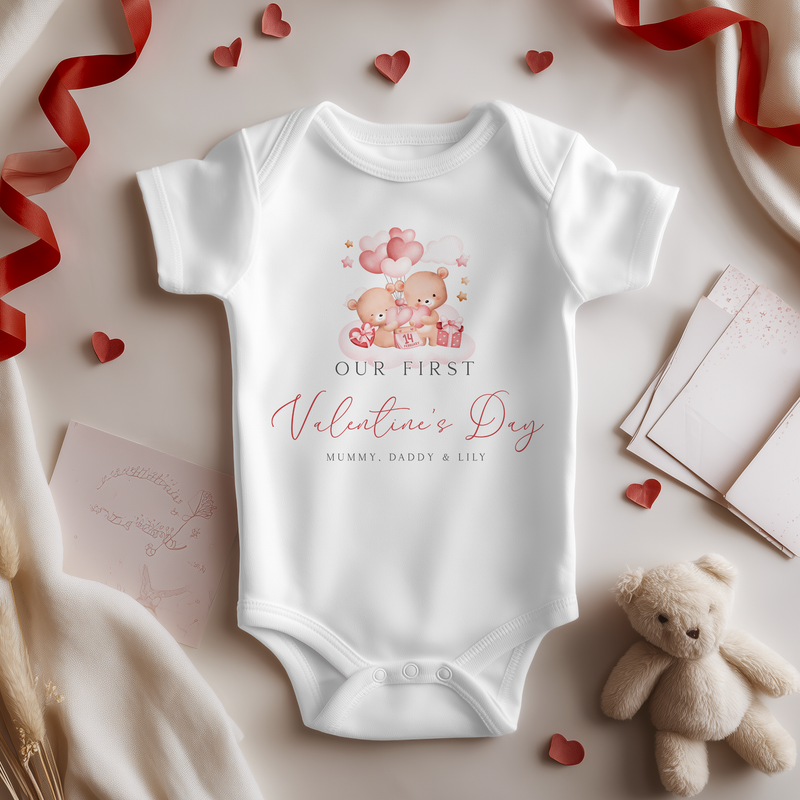 Our First Valentines Day Teddy Bears Personalised Baby Bodysuit