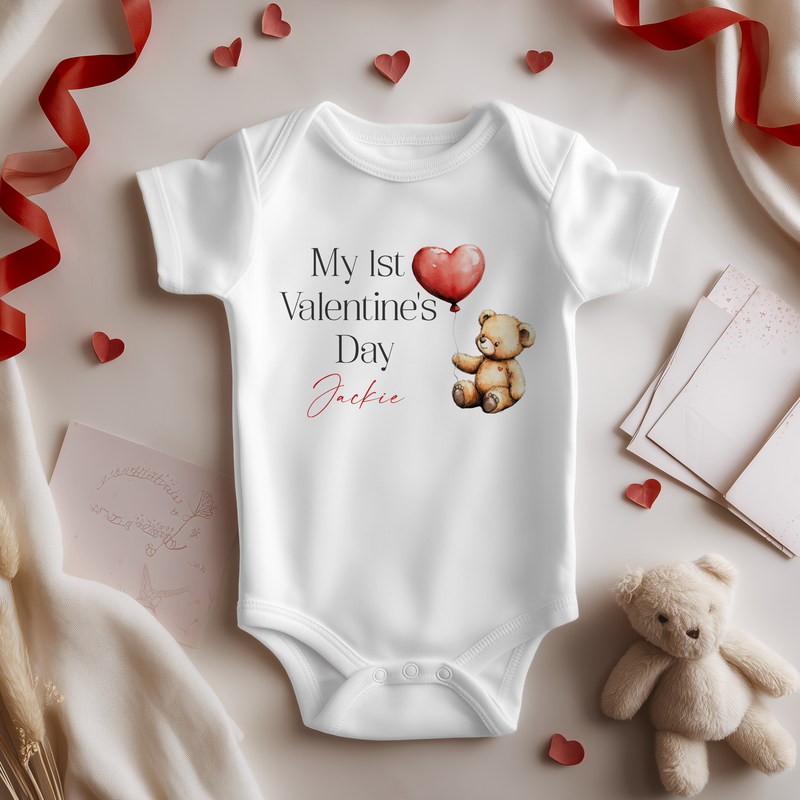 My 1st Valentines Day Cute Teddy Bear Personalised Baby Bodysuit