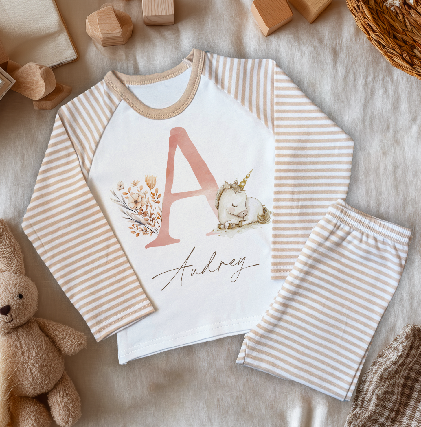 Unicorn Personalised Letter With Initial Toddler & Kids Pyjamas Set