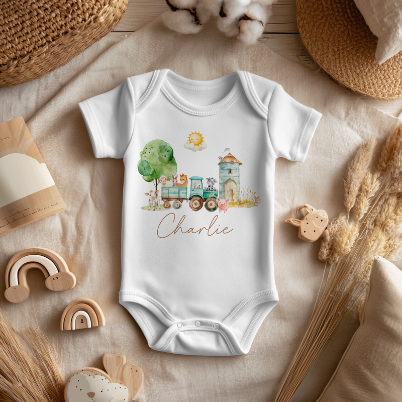 Farm Animals Tractor Personalised Baby Bodysuit