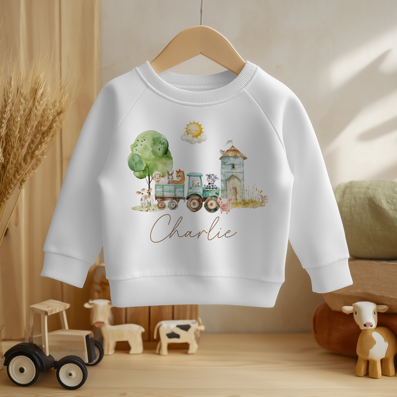 Farm Animals Tractor Personalised Toddler & Kids Sweatshirt