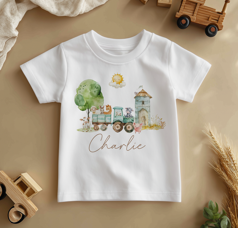 Farm Animals Tractor Personalised Toddler & Kids T Shirt