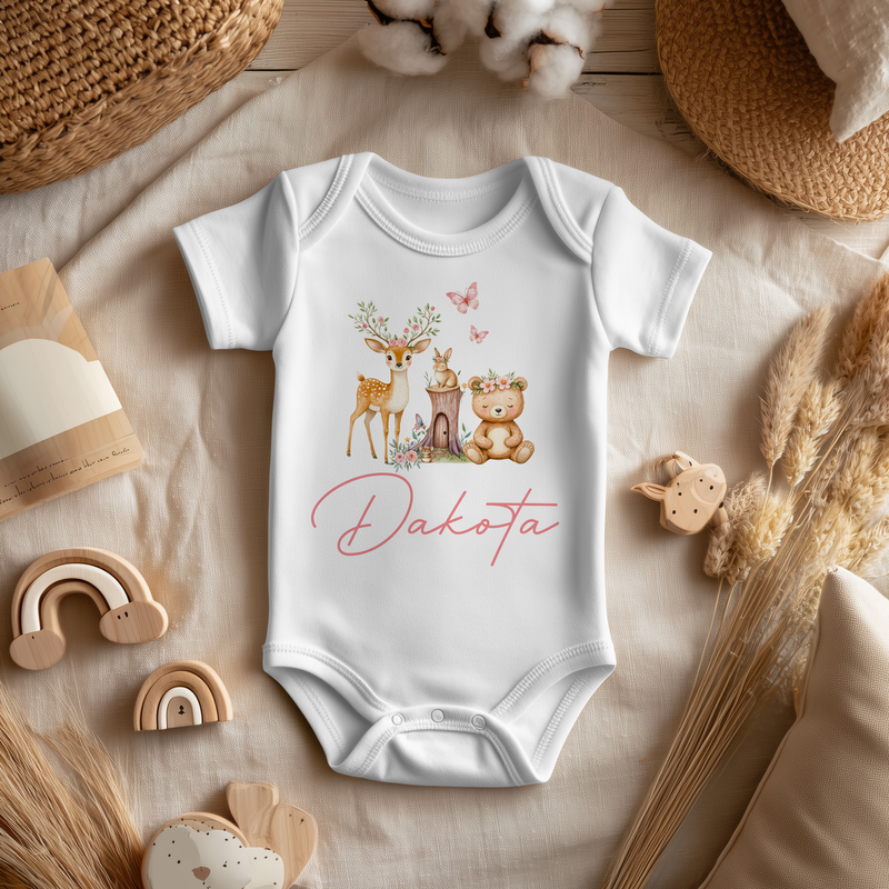 Forest Cute Animals Girl Personalised Baby Bodysuit
