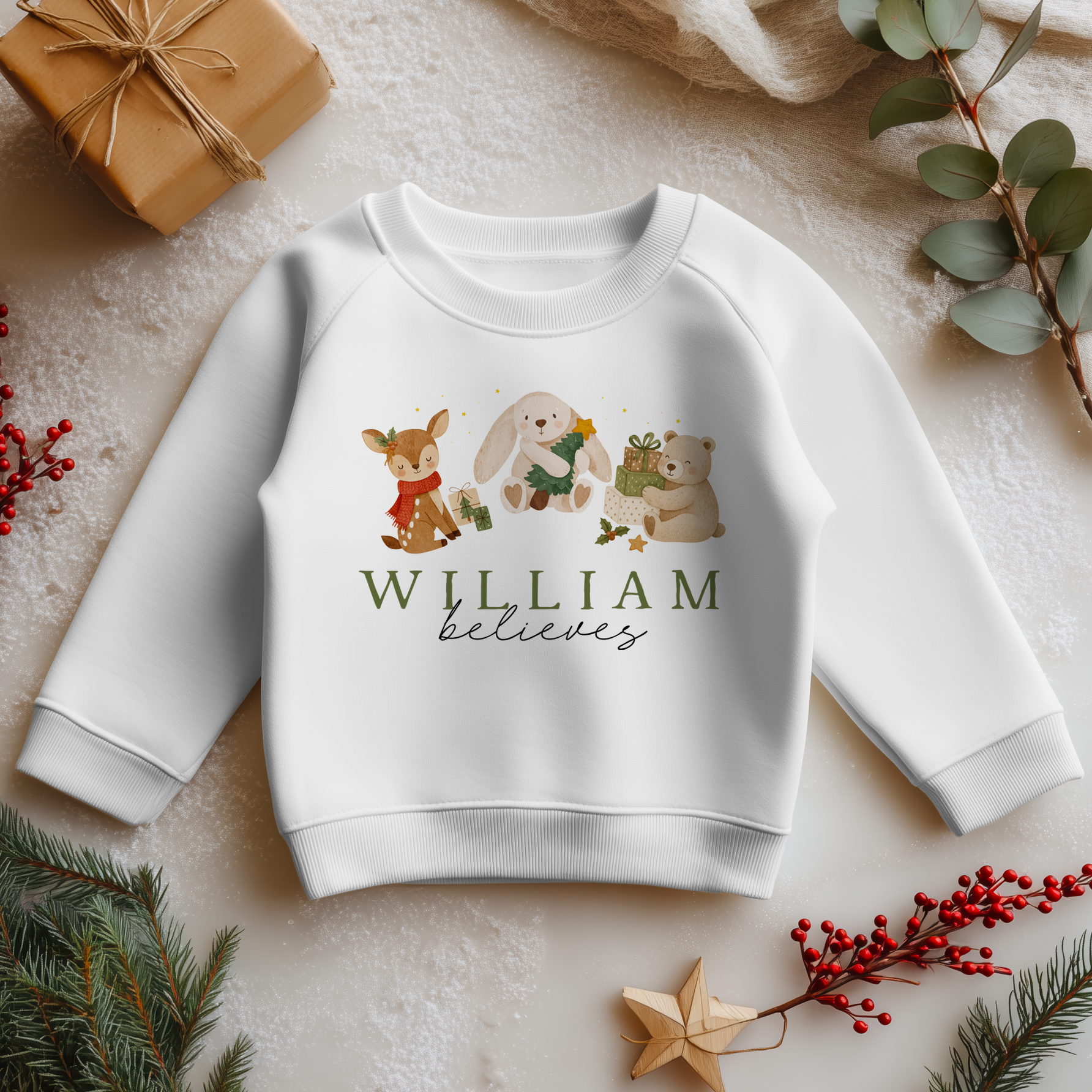 Believe Christmas Animals Personalised Toddler & Kids Sweatshirt