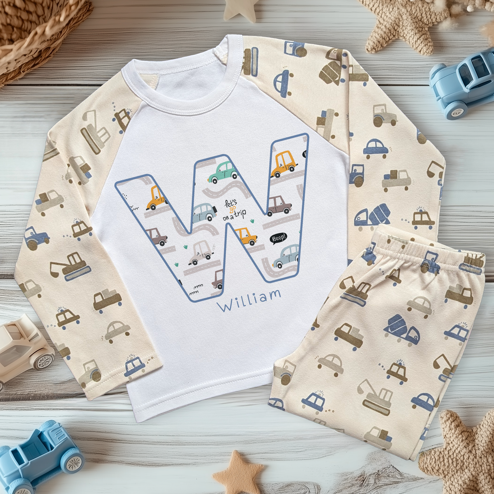 Cars Theme Personalised Name Toddler & Kids Pyjamas Set