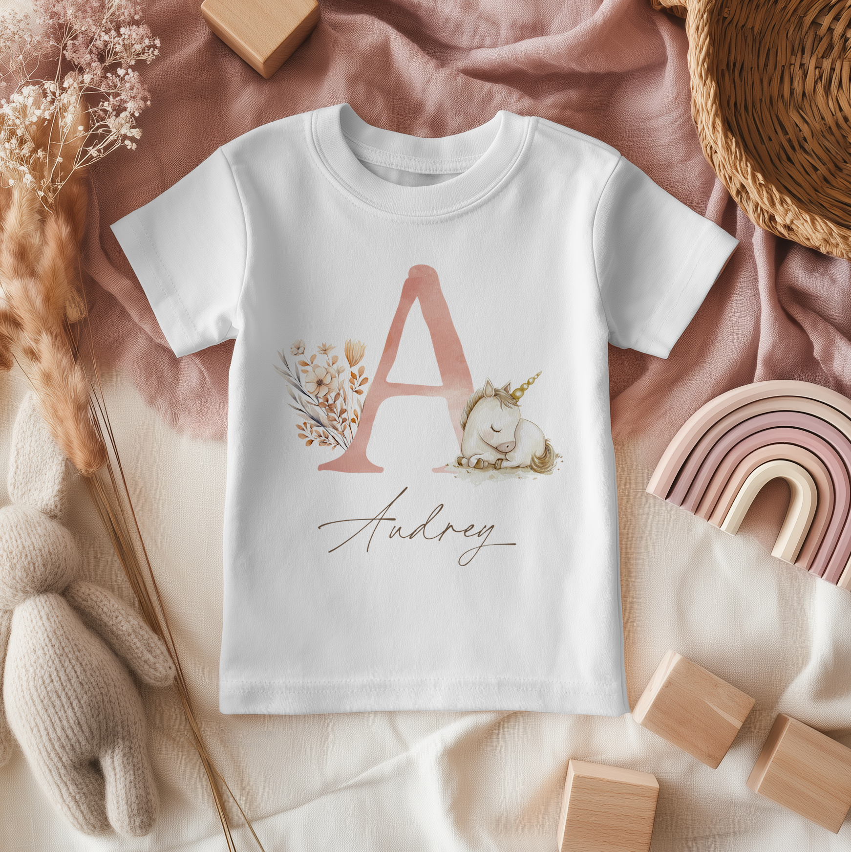Cute Unicorn With Initial Personalised Toddler & Kids T Shirt