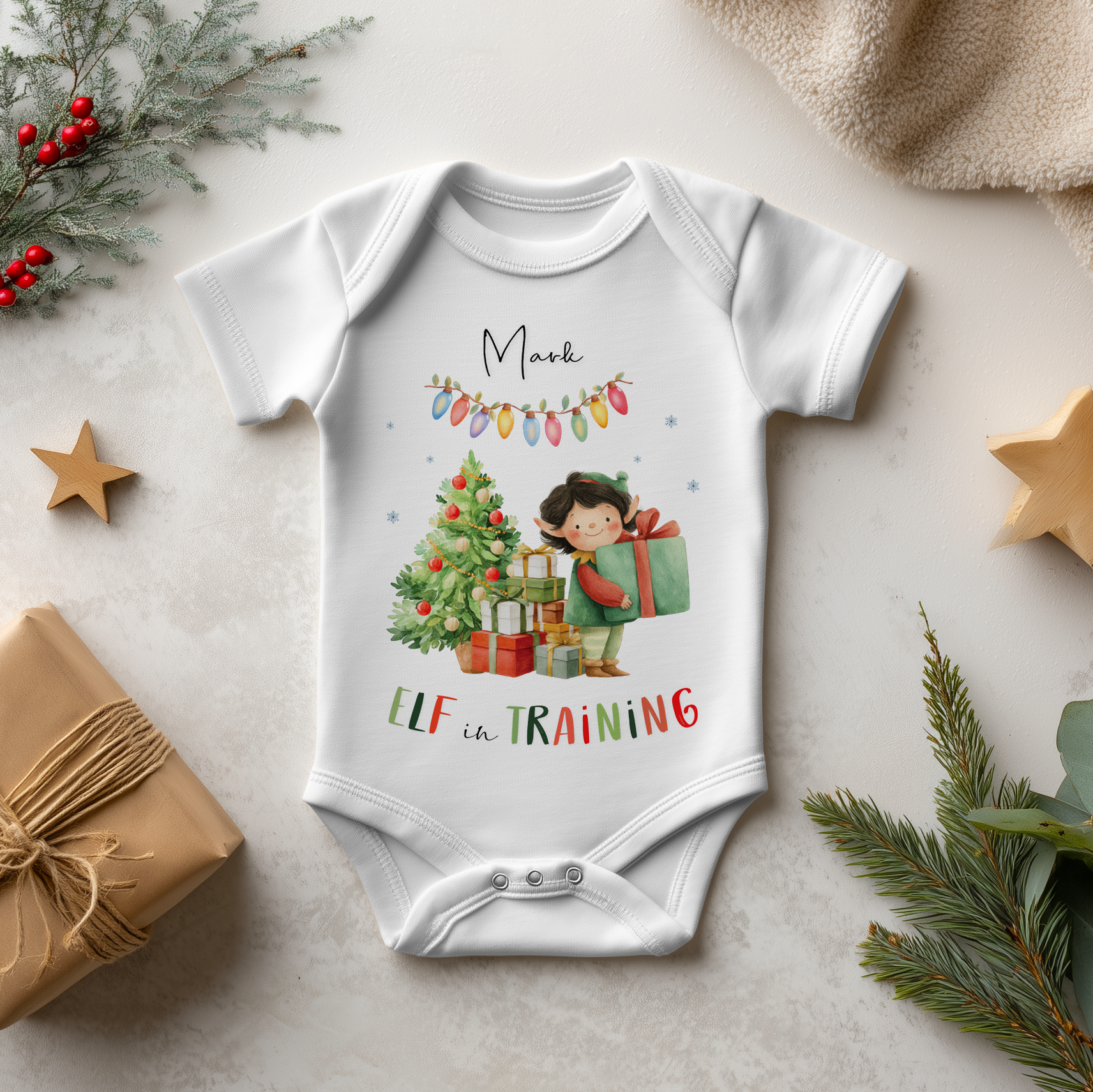 Elf In Training Boy Christmas Personalised Baby Bodysuit