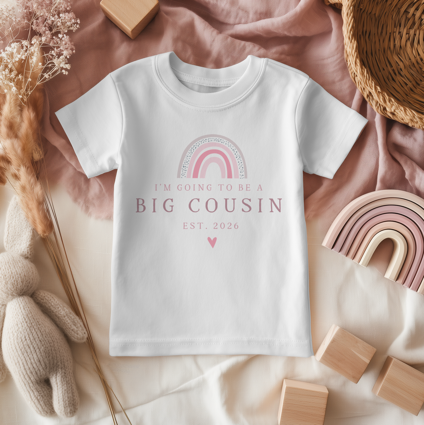 I'm Going To Be a Big Cousin Pink Rainbow Personalised Toddler & Kids T Shirt